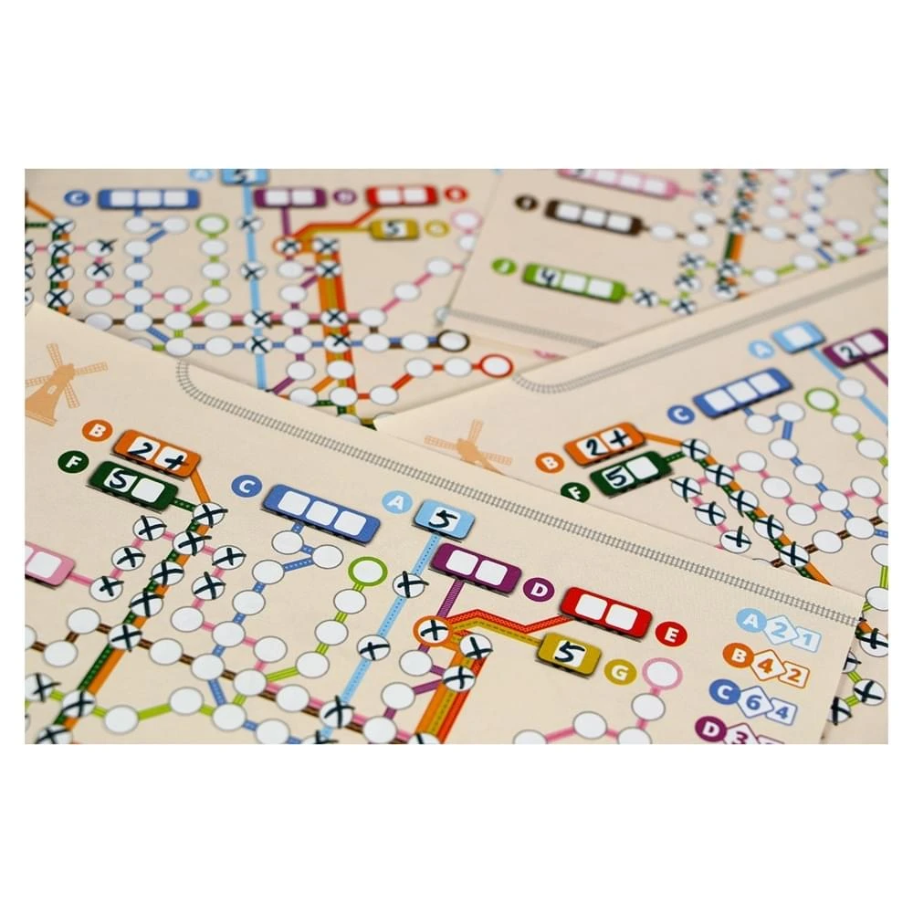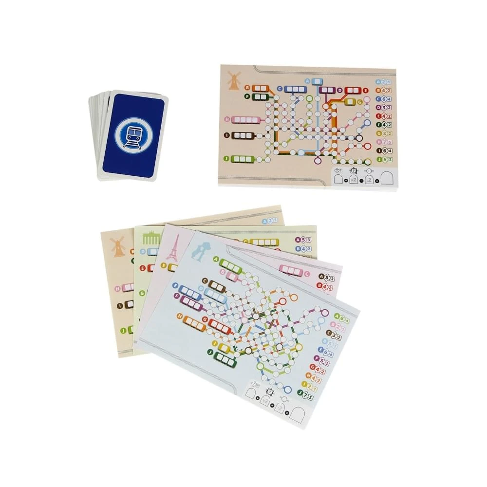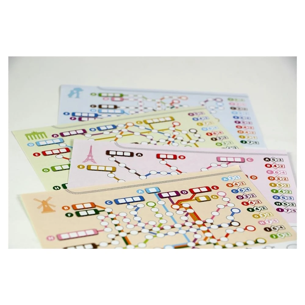 Metrolijn bevat vier verschillende scorevellen voor meer variatie. Zo kun je metrolijnen aanleggen in Parijs, Berlijn, Madrid en Amsterdam. Metrolijn is zowel een gezellig en snel spelletje voor tot zes personen als een uitdagende puzzel voor solospelers.