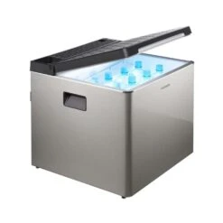 - Koelbox werkt op 12 V, 230 V en zonne-energie