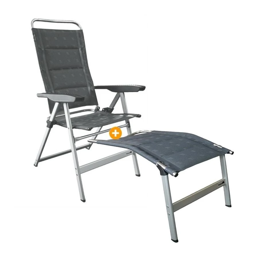 De Dukdalf stoel heeft een ergonomisch gevormde rugleuning die ook nog eens in 10 posities te verstellen is. Het versterkte aluminium frame zorgt ervoor dat de Brillante stoel stevig en stabiel staat. De bekleding is heerlijk zacht zodat je altijd comfortabel zit in deze kampeerstoel. En voor nog meer comfort plaats je de Fortissimo voetenbank onder de zitting van de campingstoel en je kunt gaan genieten. Het fijne aan deze voetenbank is dat de bekleding helemaal doorloopt waardoor je benen en voeten altijd ondersteund worden. Het ultieme relaxen kan beginnen!