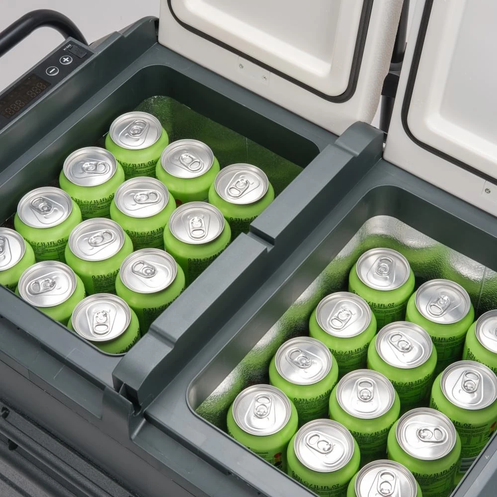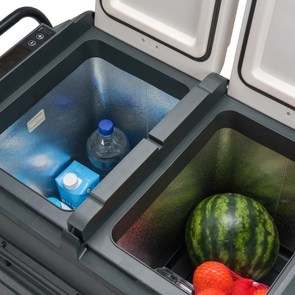 Het bijzondere aan de Fred koelboxen is dat ze niet alleen kunnen koelen, maar dat ze ook kunnen vriezen! Zo kan je zelf bepalen hoe koud je de temperatuur in de koelbox wilt hebben. Je kiest voor koelen wanneer je alleen je eten en drinken koel wilt houden. Heb je ijsjes meegenomen of andere diepvriesproducten dan kies je op het display voor vriezen. De Big Fred heeft twee compartimenten. Het is mogelijk om allebei te laten koelen of vriezen, of je laat de ene koelen en het andere compartiment vriezen. Zo simpel kan het zijn!