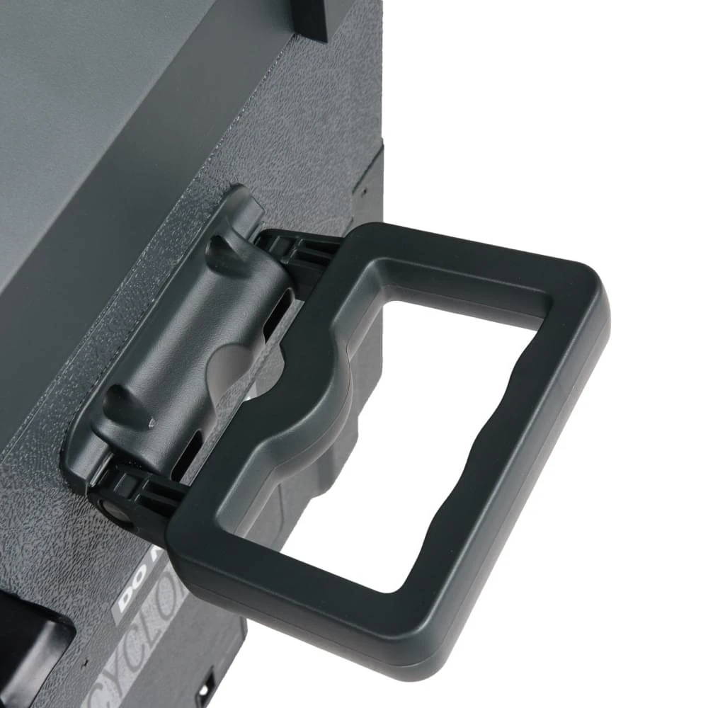 Ook in het donker kan je dankzij de verlichting aan de binnenkant van Fred zien wat je uit de koelbox pakt. Bovenop, bij het display vind je nog een USB-poort waar je dan weer je telefoon of tablet op kunt laden. Big Fred is een grote jongen en daarom heeft hij twee wielen en een beugel die je uit kunt trekken, zo is hij ook makkelijk te verplaatsen. Aan de zijkant van de koelbox vind je een flessenopener. Zet het handvat van de koelbox uit en je kan in het gat de parasol klemmen. Kan jij in de schaduw genieten van een heerlijk verfrissend drankje. Fred zorgt voor je eten en drinken en is heel rustig, de perfecte reisgenoot