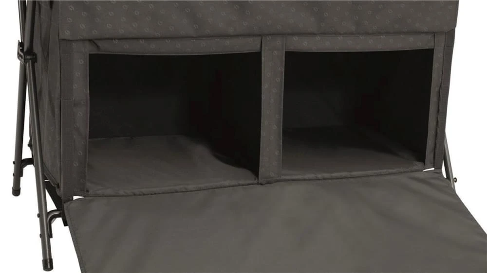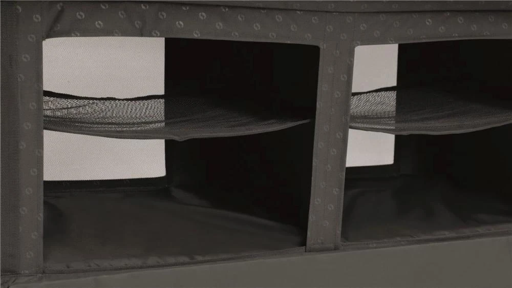 De campingkast is in een mum van tijd opgezet en snel in- en uit te klappen. De mazen in de kast zorgen voor een verbeterde luchtcirculatie. Aan de zijkant van de kast zitten ophanghaken en een opbergvak. De optionele Neat ‘N’ Tidy Organiser kan handig aan de zijkant worden opgehangen voor nog meer gemak. Na gebruik kan de Outwell Campingkast Aruba weer worden opgeborgen in de handige meegeleverde draagtas.