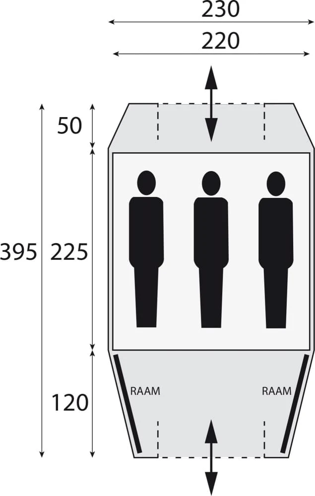 Deze Kenia 230 is de oplossing om ’s ochtends makkelijk de tent te kunnen verlaten. De koepeltent beschikt namelijk over 2 in- en uitgangen. Zodoende kun je in de voortent de spullen laten staan en aan de achterzijde de tent verlaten zonder struikelen over van alles en nog wat.