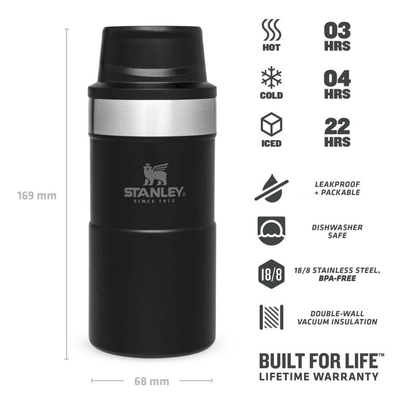 Voor wie vroeg op pad moet kan wel een sterk kopje koffie gebruiken om wakker te worden. Als geen ander heeft Stanley een thermosbeker in het assortiment die aan alle eisen voldoet. De beker is lekvrij, houd je kopje koffie of andere warme drank tot wel 3 uur warm en kan gewoon in de vaatwasser.